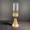– Chất liệu: Thân, và khung được làm bằng thép, mạ đồng vàng óng, lọ nến bằng thủy tinh