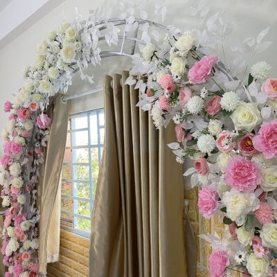 - Khung Cổng hoa cưới C82 có khung cổng hình tròn, được làm từ thép tổng hợp.