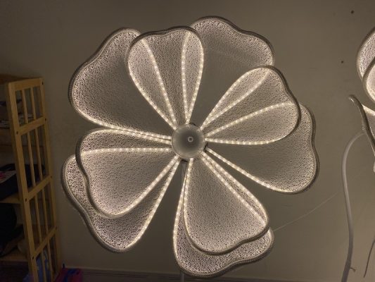 – Bông hoa lớn, mỗi bông đường kính 60cm, xung quanh cánh hoa là đèn led.